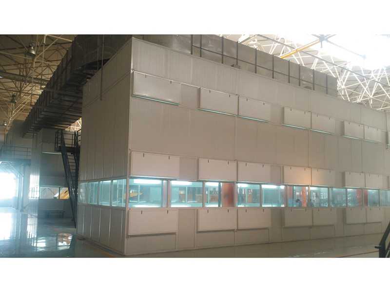噴漆時(shí),外部空氣經(jīng)過初級(jí)過濾網(wǎng)過濾后由風(fēng)機(jī)送到房頂,再經(jīng)過頂部過濾網(wǎng)二次過濾凈化后進(jìn)入房?jī)?nèi)。房?jī)?nèi)空氣采用全降式,以0.2-0.3/s的速度向下流動(dòng),使噴漆后的漆霧微粒不能在空氣中停留,而直接通過底部出風(fēng)口被排出房外。這樣不斷地循環(huán)轉(zhuǎn)換,使噴漆時(shí)房?jī)?nèi)空氣清潔度達(dá)98%以上,且送入的空氣具有一定的壓力,可在車的四周形成恒定的氣流以去除過量的油漆,從而大限度地保證噴漆的質(zhì)量。