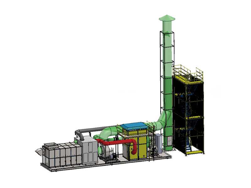 脫附產(chǎn)生的濃縮廢氣在進入催化床層之前,與高溫煙氣首先在換熱器單元進行換熱,預熱脫附廢氣并進入催化床。脫附氣體在催化床內(nèi)升至300℃,進行催化氧化反應,有機成分被氧化成無毒無害的CO2和H2O,并放出熱量。形成的煙氣(<650℃)在排出時與進氣進行換熱后,達標排放。